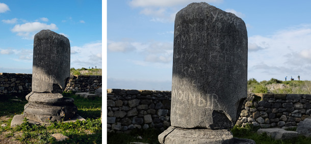 The exploration of cultural influences of the past conducted with the project “The Dog’s House” ultimately resembles exploring a collective unconscious, with perhaps the intention of reactivating its areas that were accidentally or voluntarily censored through the course of history. Here, mounir fatmi attempts to conduct a form of fictional or utopic archeology that for example leads to a series of photographs of phallic Roman columns on which lovers etched their names, or imaginary objects. It reconstitutes the cultural foundations of a society in all its diversity and complexity – against social stereotypes and retrospective anachronistic interpretations, so often unique and unequivocal. The fictional archeology restores the balance of the parties involved: the artist’s sculpture “The Dog’s house” stemming from this project places a vulva carved from a block of stone next to a reproduction of the famous Volubilis phallus, both separated by a 2-meter high window pane. The sculpture questions the position of women in Moroccan society while introducing feminism through the production of “vulva art”, competing with a form of phallic art that is fashionable not only in Morocco but throughout the world, from the origins of humanity to the present day.