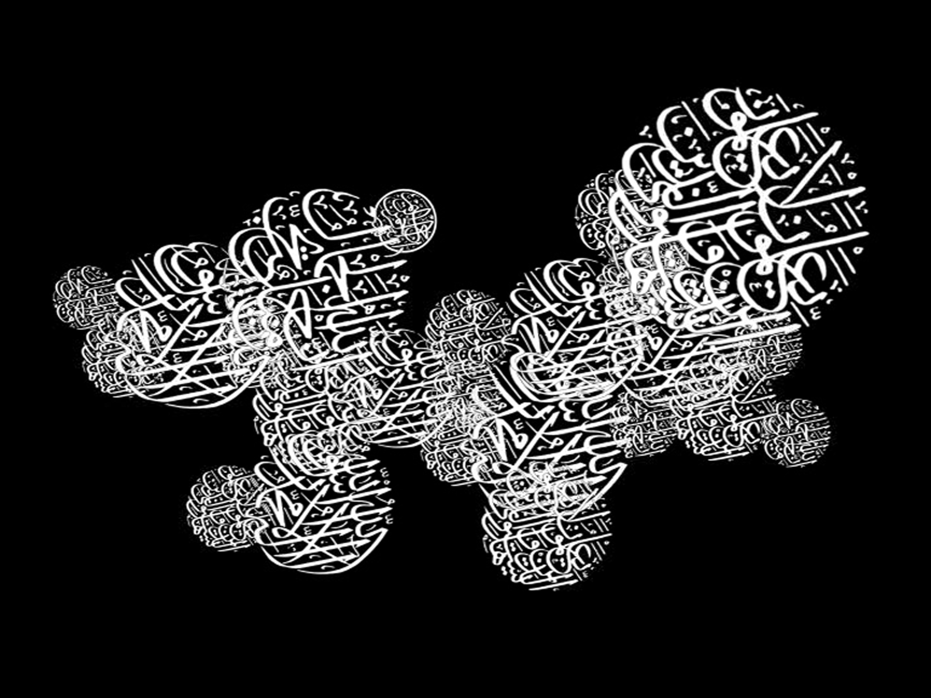 The video Ghosting comprises a series of intertwined calligraphed circles rotating with varying speeds, clockwise and counter-clockwise, and whose ghost-like whiteness lights up against a black backdrop.