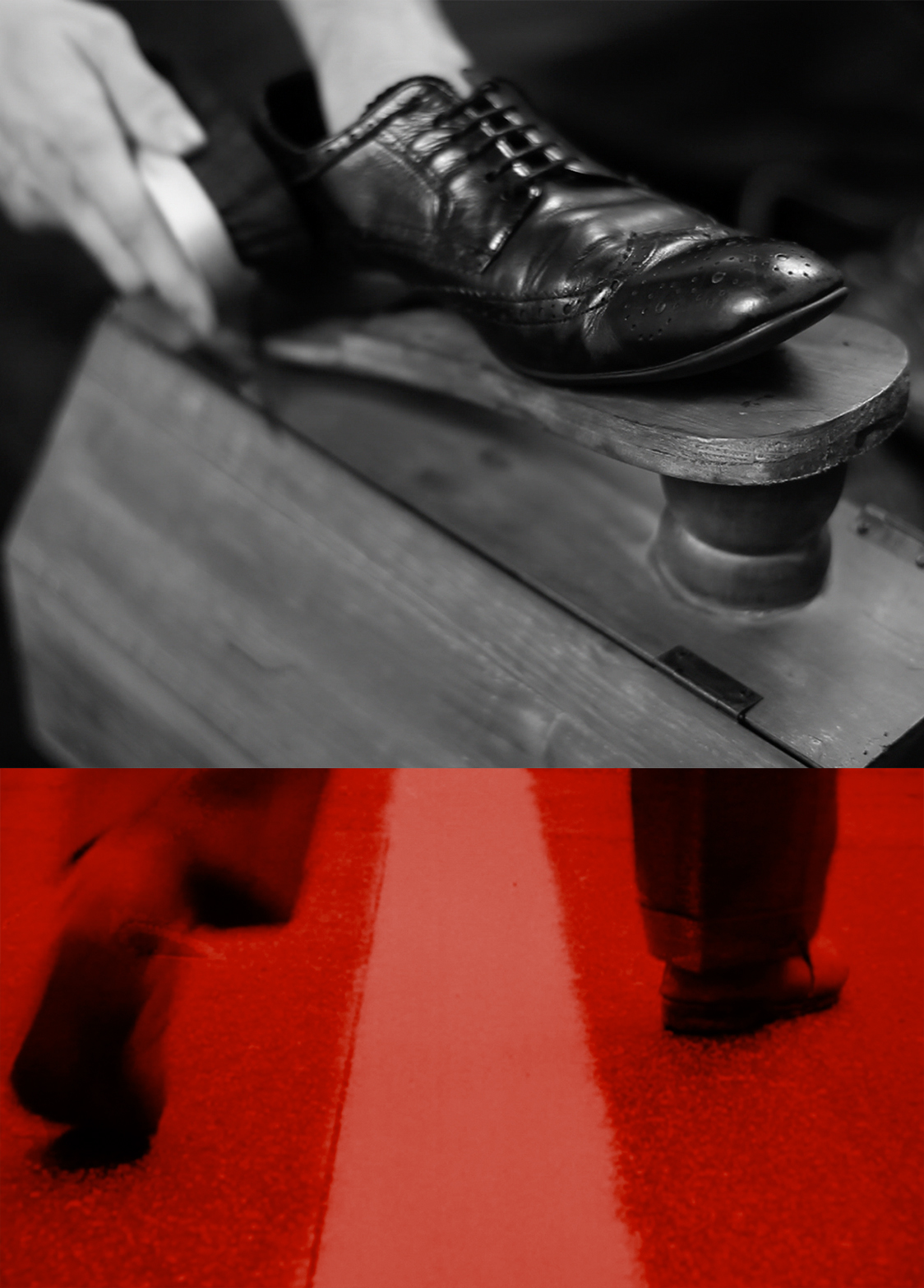 In his 2014 experimental film, Darkening Process, mounir fatmi explores the life of John Howard Griffin, an American writer and Civil Rights activist who was so frustrated by the injustice experienced by African Americans during the 1950s-1960s, that he took pills and had UV exposure to turn his skin black. For several months he travelled the south, looking for work and writing about his experience. During this time the only job that Griffin could find, despite having studied French literature, religion and medicine, and having served in the US Army, was shining shoes, and Darkening Process turns around a closely cropped scene in black and white that shows a pair of hands intensely polishing and scrubbing a pair of black leather shoes. Both the shoes and the hands get increasingly darker as the film continues, the hands rubbing some of the black polish into the skin, our eyes witness to the change.