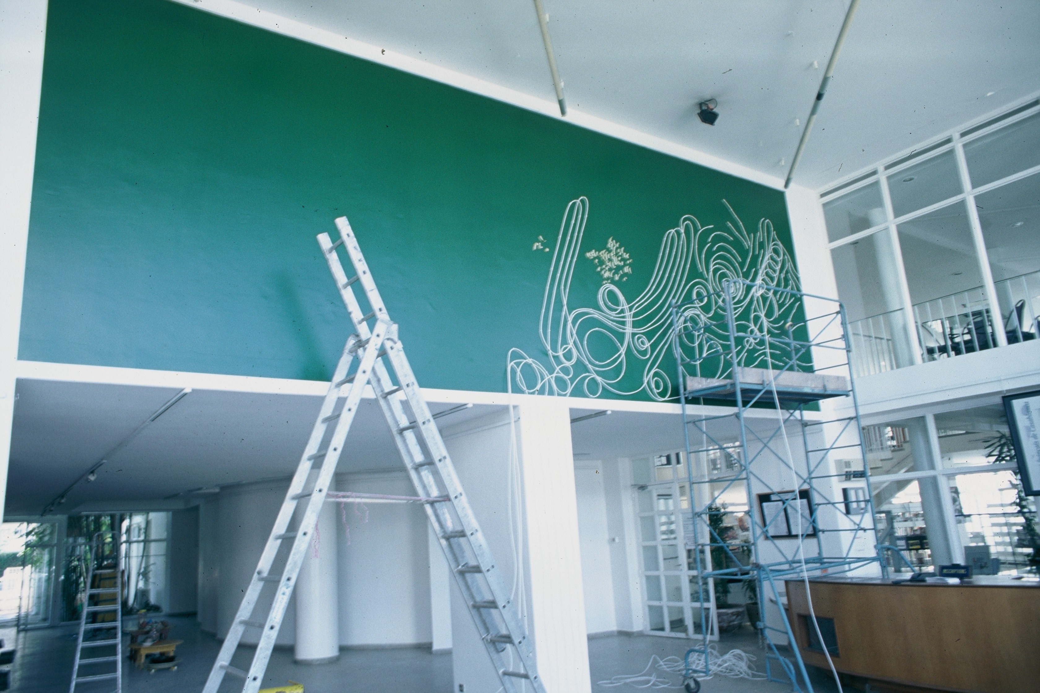 1999, coaxial antenna cable, staples, painting, size may vary.