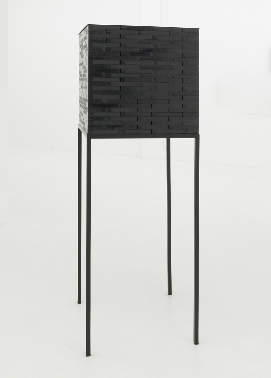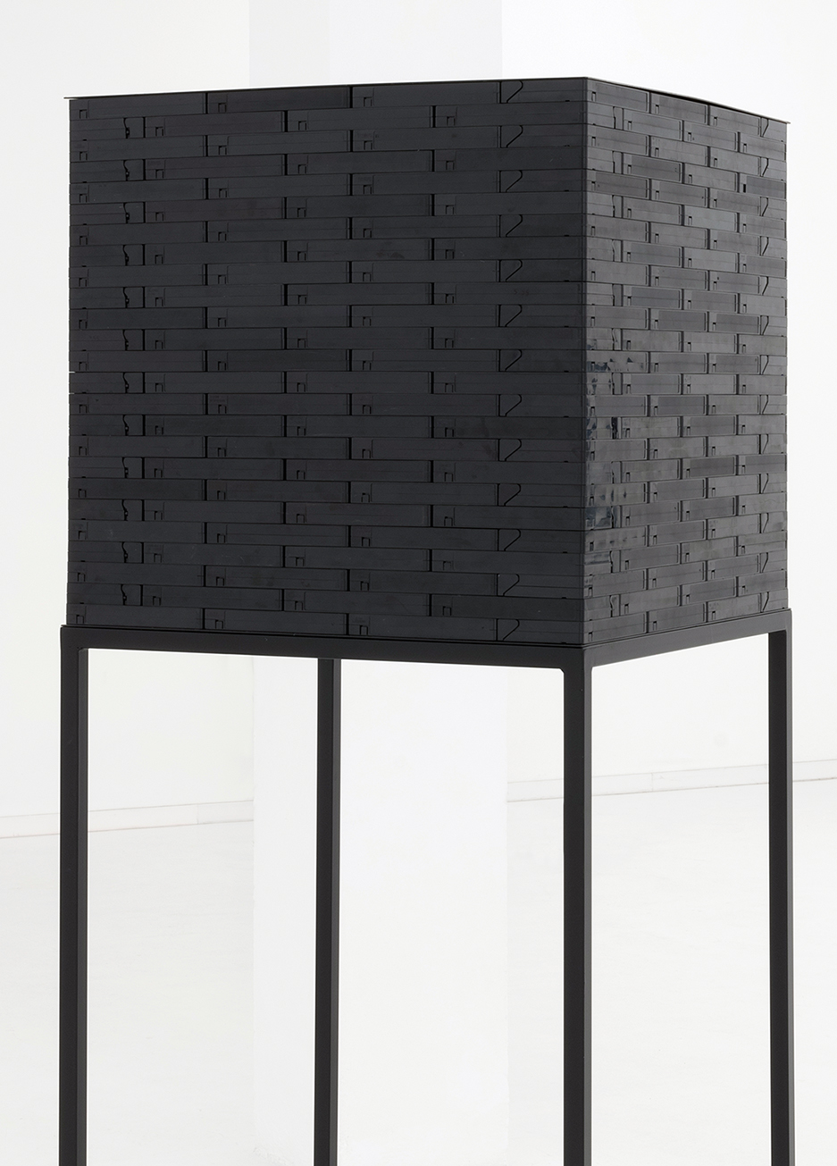 Propaganda is a sculpture made of VHS tapes piled up on top of each other, creating a sort of black cube. The use of a material becoming obsolete in our digital age questions the expiration of the artwork itself but mostly has to do with a certain idea of the absence of images.