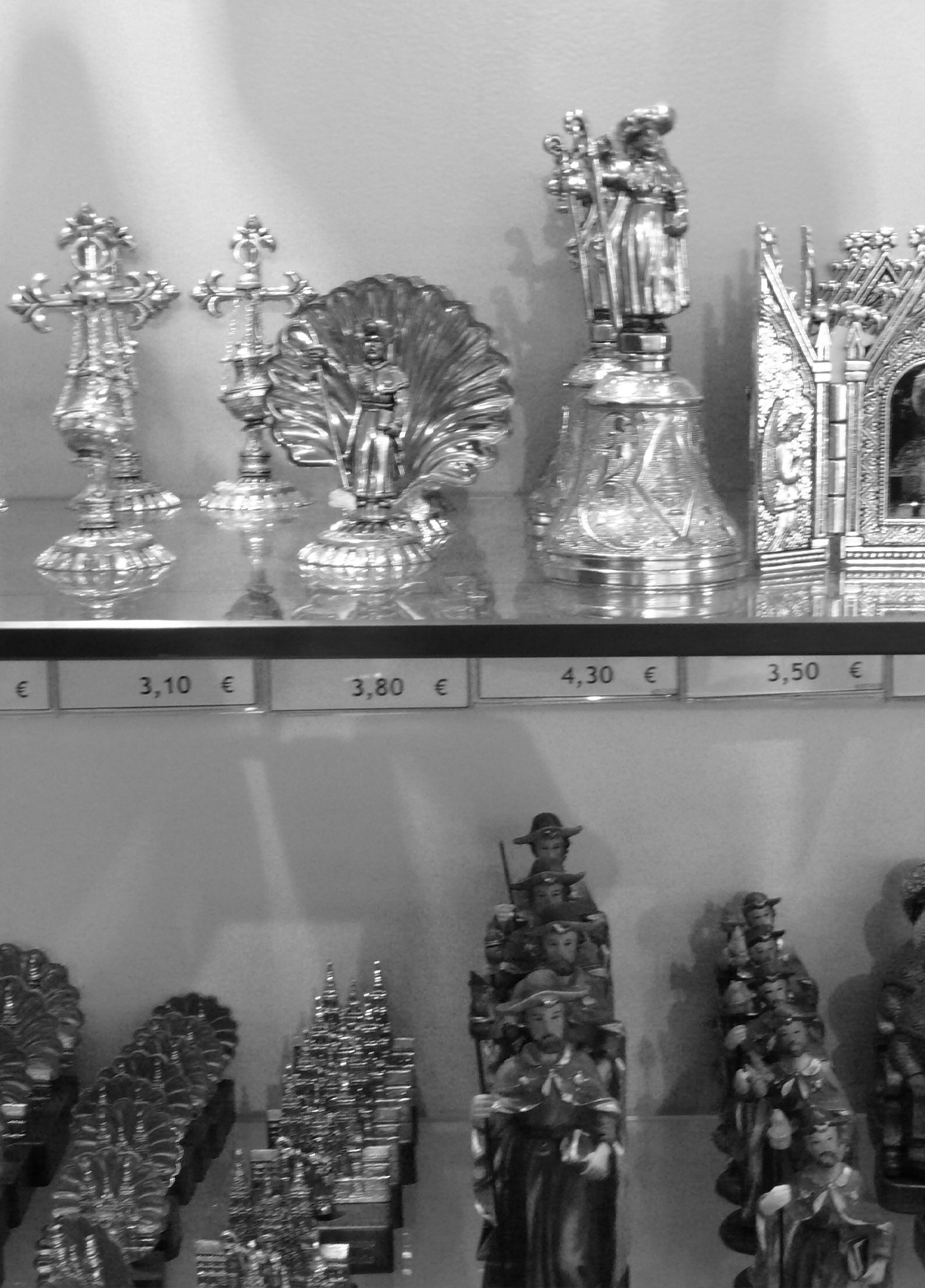 Une rencontre problématique entre commerce et religion est évoquée dès les premiers récits bibliques avec l'épisode de la « Purification du temple ». Dans cet épisode, Jésus et ses disciples se rendent à Jérusalem pour la Pâque et à son arrivée Jésus expulse les marchands qu'il considère comme des voleurs hors du temple. Avec la photographie « Le Prix » de 2008, l'objectif de l'appareil s'attarde sur le contenu de la vitrine d'une boutique d'ésotérisme chrétien et se focalise sur un onéreux crucifix, dont le prix est annoncé par une étiquette, entouré de divers ouvrages à caractères religieux. En se focalisant simplement sur l'objet de culte, l'œuvre évoque une forme surprenante d'ironie du sort à partir d'une représentation religieuse classique et devenue banale. Elle constate le déplacement de Jésus depuis le temple jusqu'à son immobilisation sur la croix, derrière la vitrine d'un magasin et observe de quelle manière la société marchande s'empare d'une idéologie religieuse pour la mettre à son service. La juxtaposition de l'objet de culte aux autres marchandises exposées fait également du personnage de Jésus une icône du pop art en quelque sorte, avec le constat de sa transformation en objet de grande consommation, reproduit en masse et auquel est assigné - supplice ultime ou clin d'œil ? - une valeur marchande. Le prix qui mesure la valeur matérielle et vénale d'une transaction conditionne ici l'accès à la rédemption et le salut est susceptible de se négocier comme n'importe quelle autre marchandise.