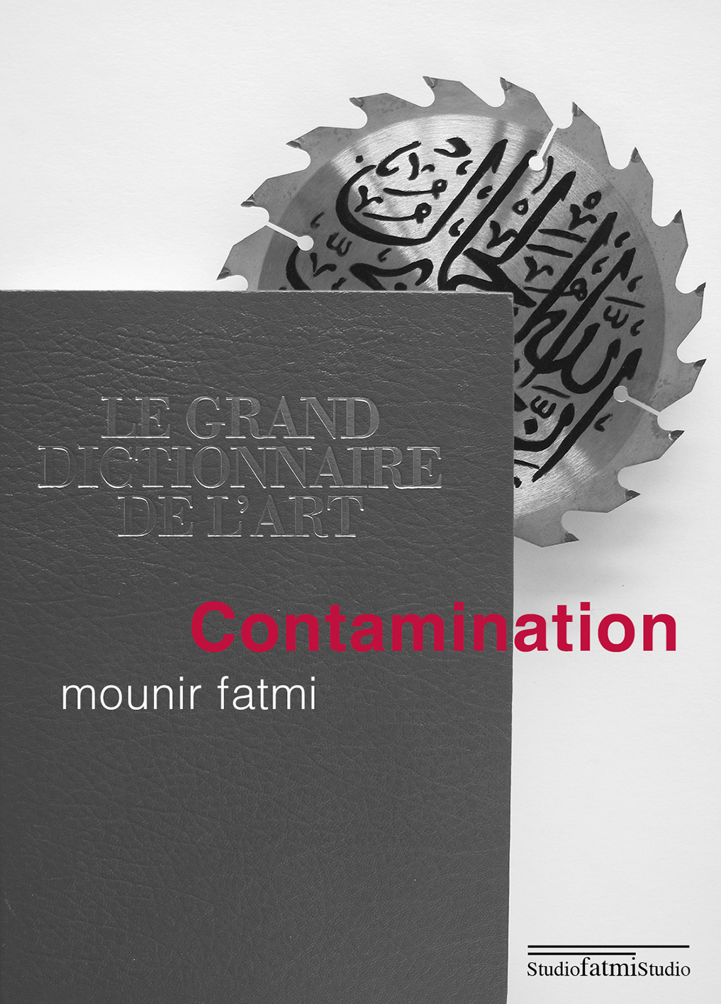 « Contamination » est un work in progress photographique initié en 2009 qui intègre dans ses compositions deux éléments récurrents des œuvres de mounir fatmi : le livre et la lame de scie circulaire ornée de motifs calligraphiques à caractère religieux ou poétique. Le livre est employé dans l'étude de ses pouvoirs de transmission ou de censure des informations et des connaissances tandis que la lame de scie circulaire est utilisée dans l'examen des rapports entre la pensée religieuse et dogmatique et la pensée critique. Un troisième thème fait le lien entre ces deux séries de questionnements : le langage, pour lequel les œuvres de mounir fatmi témoignent d'un intérêt constant. La contamination, au sens premier, désigne l'envahissement d'un organisme vivant par une substance pathogène et l'altération de ses réactions biologiques. Le titre de la série photographique s'inspire d'une conception virale de la langue exprimée en son temps par William Burroughs : « Language is a virus ».