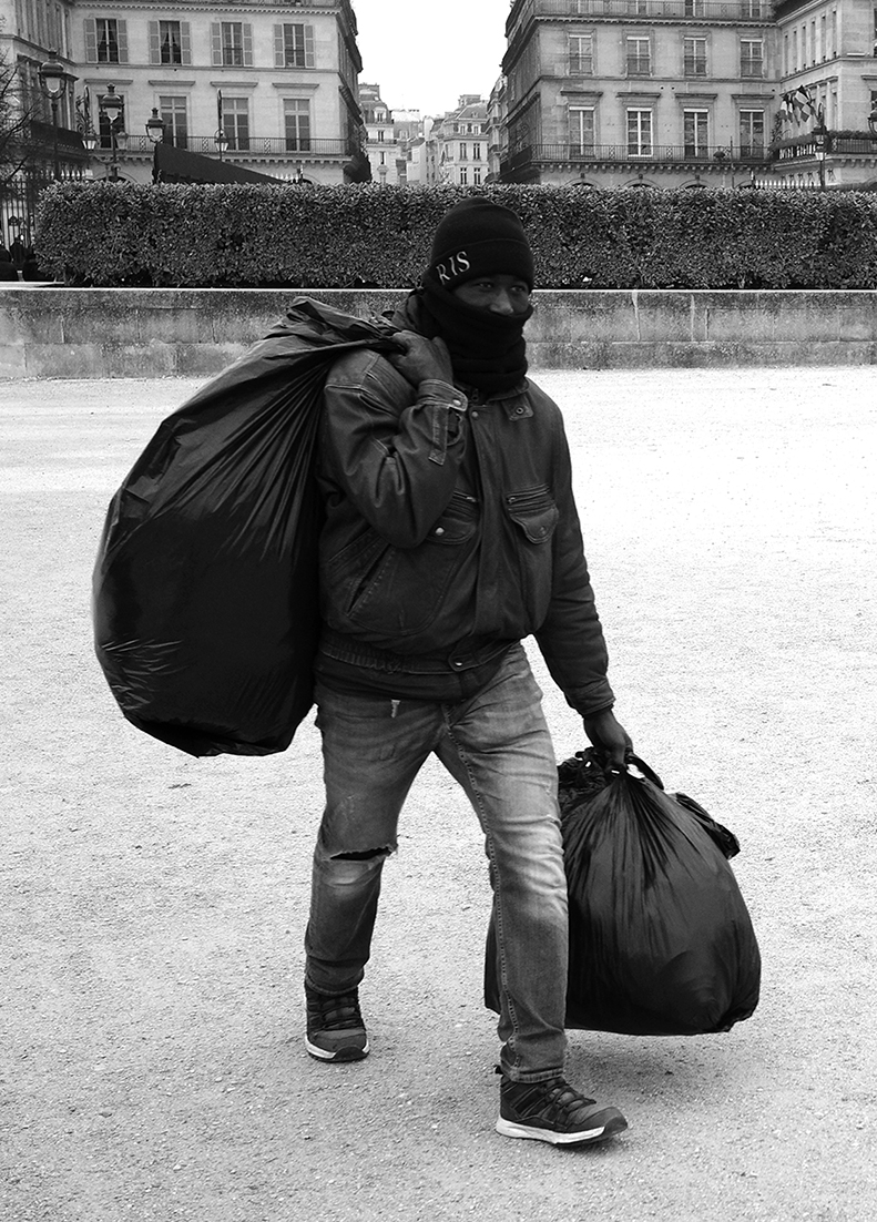 The 2010 photograph in the series « Fuck the Architect » features the tragedy at play between humans and architecture in a black & white composition. It shows the domination of architecture over man, with the image of an African street vendor kneeling in the dust of the Champ de Mars in Paris, whose survival depends on his selling of miniature reproductions of the Eiffel Tower, a giant and universal symbol of French culture and its influence. « Fuck the Architect » is a call to place the human element back at the center of architectural projects, as it’s too often forgotten, while, by reversing the proportions between the man and the towers at his feet, it addresses a disrespectful « fuck » to architecture and its creator.