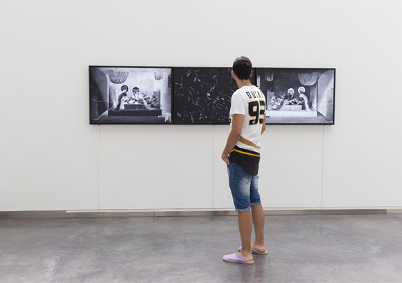 Fatmi gathers phantom images and repurposes them as videos, perfectly in line with what Françoise Parfait says about this medium: video, a hybrid form by excellence, always cites another image – in this case, an image by Fra Angelico. It is a place for memory that harbors the history of images. In Fatmi’s case, the hybridization of the form is constant.