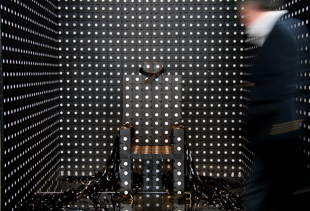 Cette installation engage un dialogue entre l’œuvre de Warhol et le minimalisme américain. Etrangement, l’image de la chaise électrique a pris une place, certes ambiguë, dans la culture populaire et il est possible que la série d’ « electric chairs », produite par Warhol dans les années 60 parmi d’autres « death and disasters », ait contribué à la popularité morbide de cette représentation. On connaît l’intérêt profond que Warhol portait à la mort – de nombreux critiques ont d’ailleurs interprété son œuvre à l’aune de cette fascination- mais cette image est sans doute une des plus fortes qu’il ait produit.