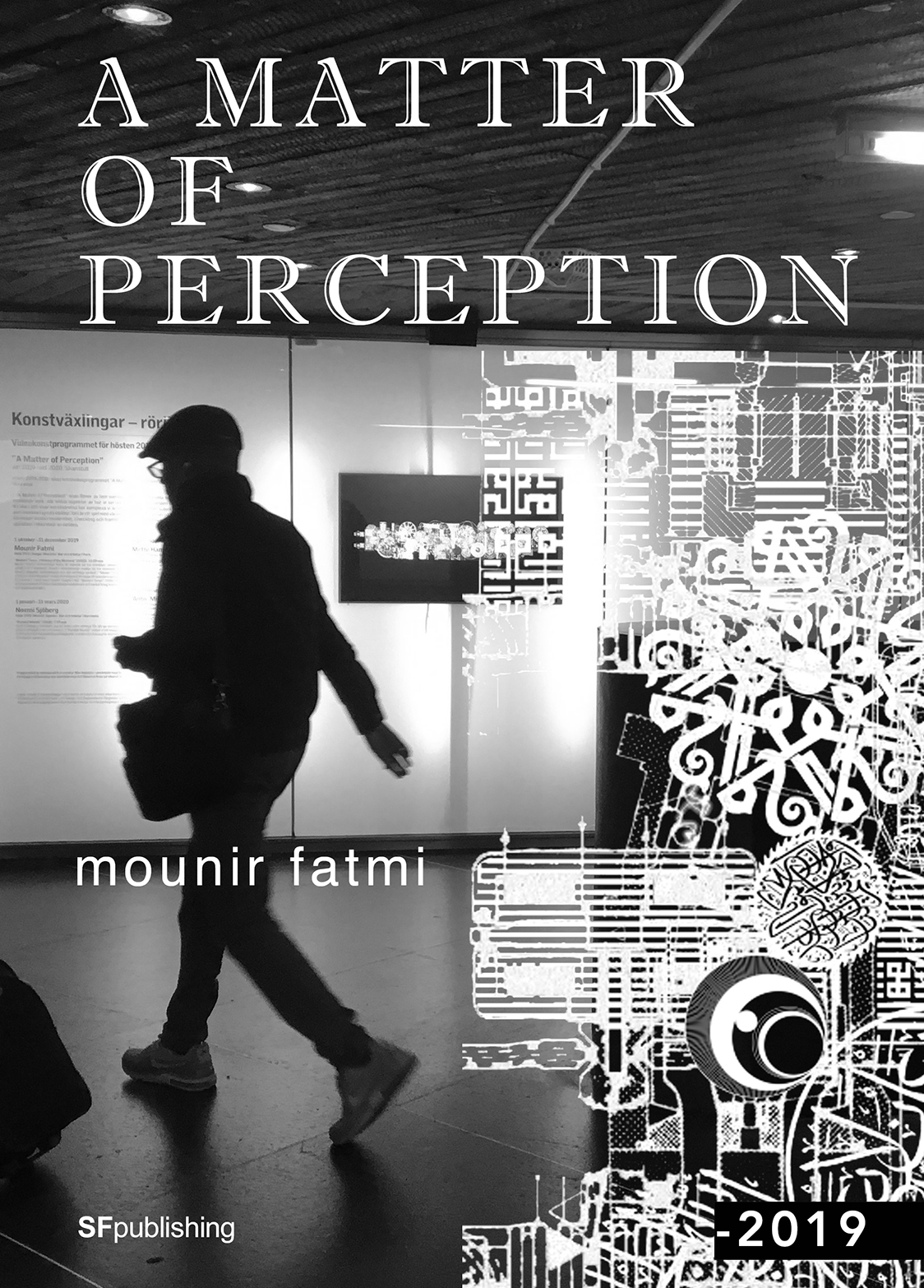 projections and creates a layer of ambiguity, with the curves and arabesques of the calligraphy eclipsing the meaning of the words, as if the message were disappearing into the engine of the machine. The words are reanimated in a purely visual way as circular abstract forms, reflecting the