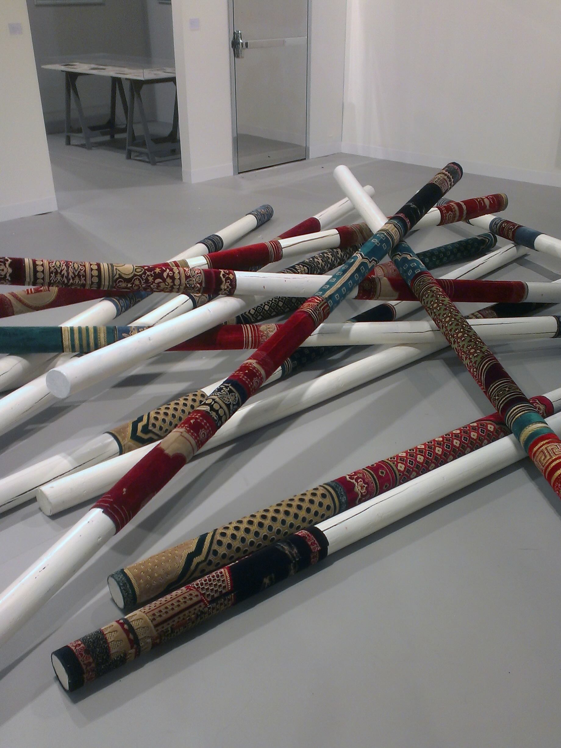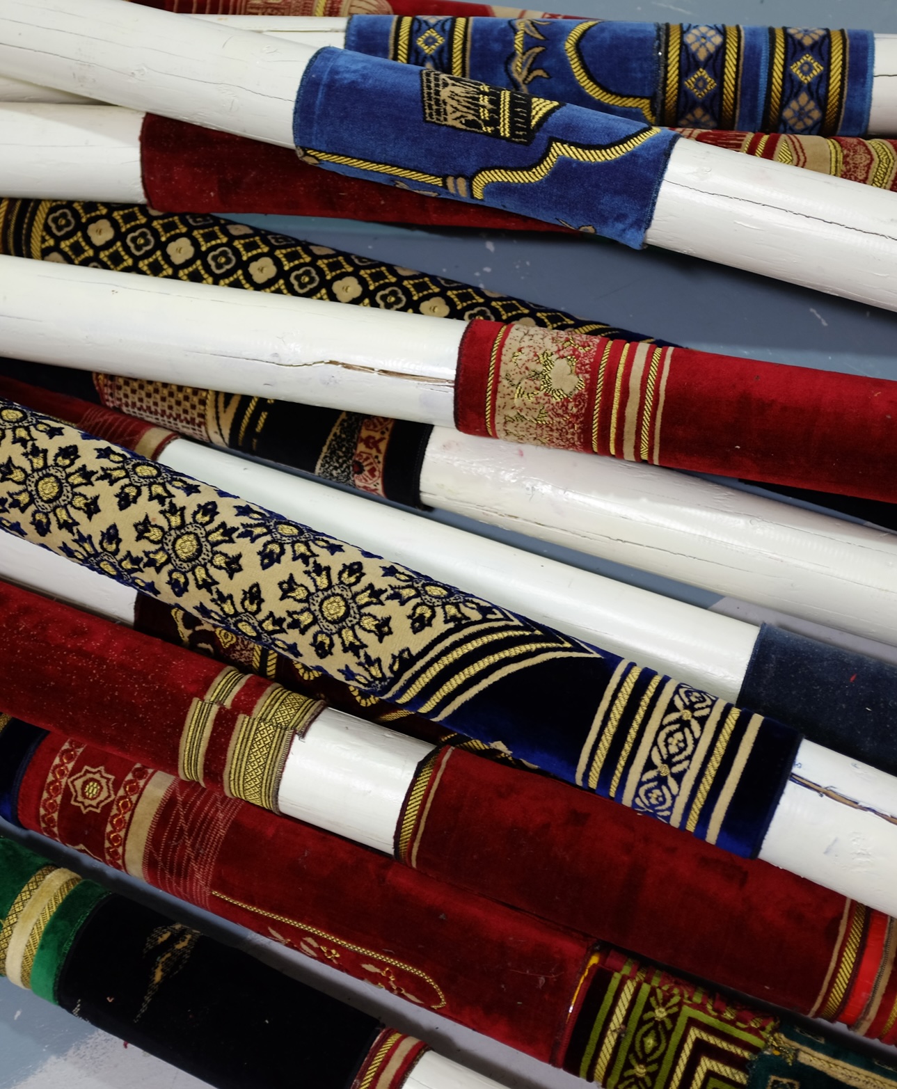 2013, 14 jumping poles of 4 meters, prayer rugs.