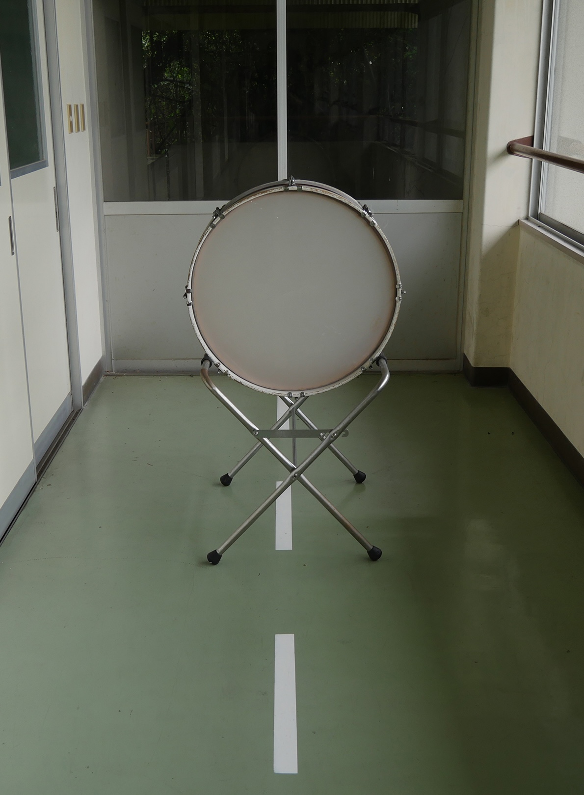 fatmi est intervenu dans presque toutes les classes vides, réarrangeant les livres, les cartes, les écriteaux et autres outils pédagogiques restés là. Dans une classe, Fatmi a placé les horloges sur certains des pupitres, mais pas toutes, une référence à ceux qui sont restés et ceux qui sont partis. Dans une autre classe, il a placé tous les trophées abandonnés au sol et les a éclairés par derrière, créant un effet d’animation inattendu. Mais l’installation a aussi servi d’acte pour suspendre la compétition, comme si l’idée de compétition était révolue, qu’elle n’avait plus sa place ici. Dans la salle de musique, le piano a été dépoussiéré et placé au centre de la pièce. À une époque, tous les écoliers japonais prenaient des cours de piano ; à présent il est là, disponible pour que chacun puisse en jouer. La partition de l’hymne de l’école a été placée sur l’étagère à musique. Fatmi a aussi créé une pièce sonore pour cette salle qui mêle trois éléments : des sons de la mer, des sons d’enfants en train de jouer et des sons de voix chantant l’hymne. Combinée au piano, la composition sonore résonne à travers le bâtiment.