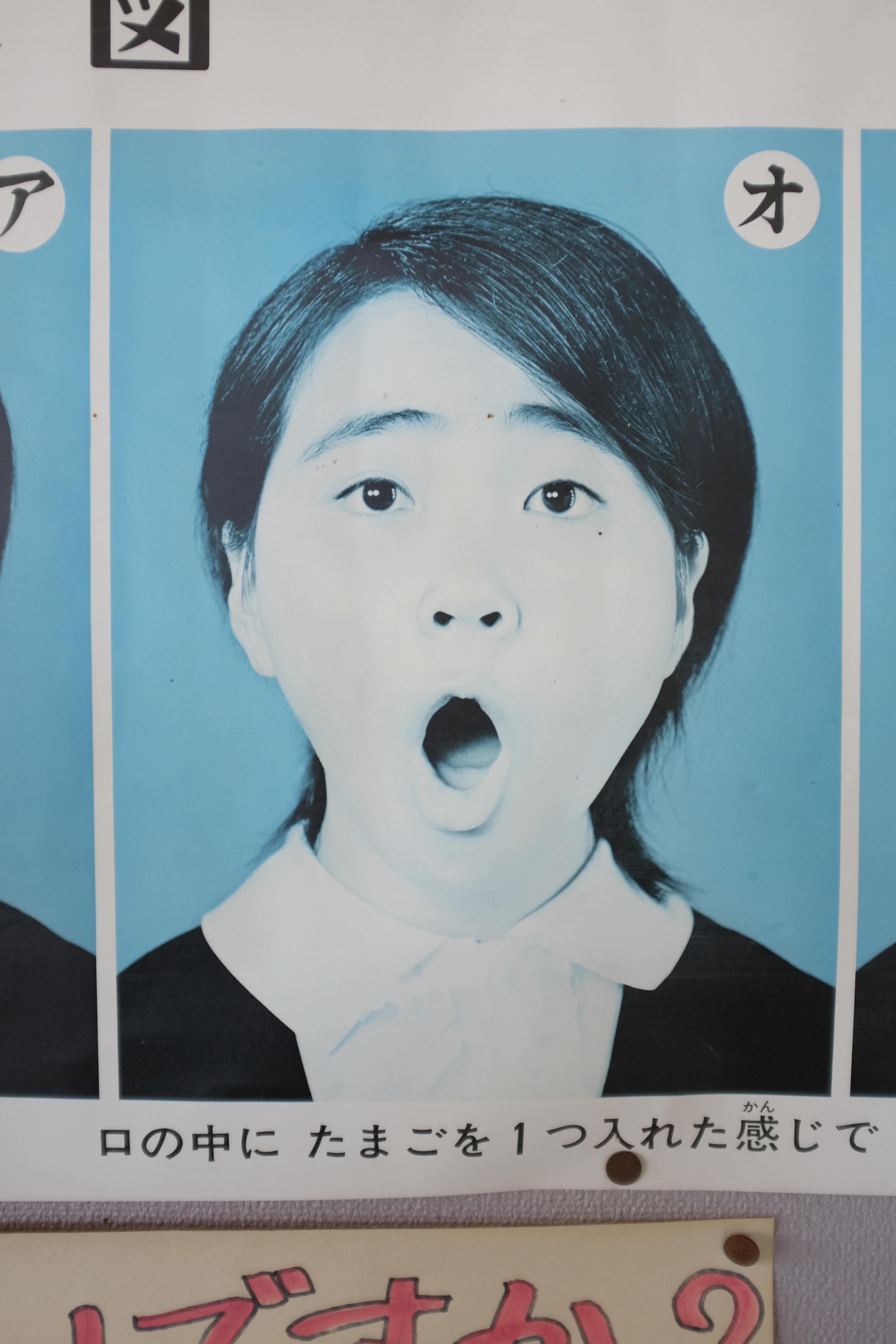 fatmi intervened in almost all of the vacant rooms, re-arranging books, maps, signage, and other remaining teaching tools. In one classroom, Fatmi placed the clocks onto some of the desks, but not all, a reference to those who have stayed and those who have gone. In another room he placed all of the remaining trophies on the ground and projected a light from behind, creating an unexpected animated effect. But the installation also served as an act stopping the competition, as if the idea of competition is done, it no longer serves a purpose here. In the music room, the piano was dusted off and placed in the center of the room. At one time all Japanese students were taught to play the piano and here it is made available for anyone to play. The composition of the school’s anthem has been placed on the music rack. Fatmi also created a sound piece for this room that mixes together three elements: sounds of the sea, sounds of children playing, and sounds of voices singing the song. Combined with the piano, the sound piece resonated through the building.