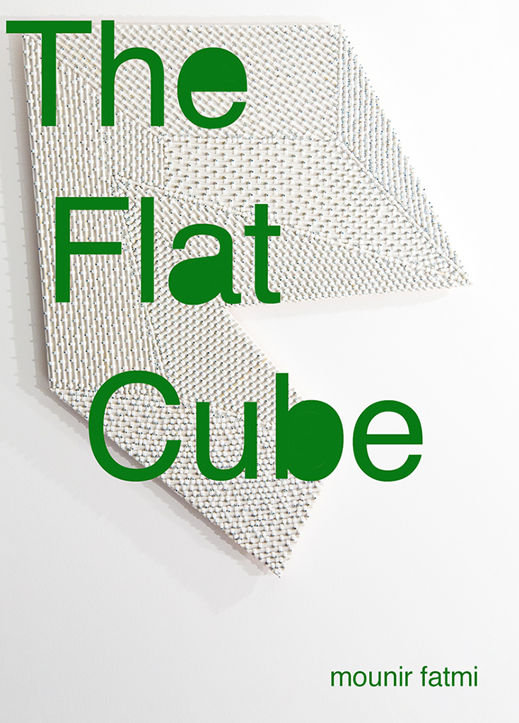 « The Flat cube » est un bas-relief réalisé à l'aide de câbles coaxiaux blancs assemblés en figures géométriques diverses accolées les unes aux autres et formant au final un polygone. Matériau de prédilection de mounir fatmi, le câble d’antenne est à l'origine un outil de transmission des images et des informations qui a participé à l'essor des sociétés organisées autour des médias et de la communication. Le câble, chez mounir fatmi, est employé dans l'étude des relations entre les individus et les grands systèmes de communication et de production des significations. On retrouve un tel emploi avec des œuvres telles que « Al Jazeera », « Ceux qui savent et ceux qui ne savent pas », ou encore « Qui a besoin d'un dieu triangle? », parmi d'autres. Le cube est également un objet géométrique récurrent du corpus de l'artiste, notamment dans les projets de vidéos, de sculptures et de photographies intitulés « Casse-tête pour un musulman modéré », où la figure entre dans une observation des rapports du croyant aux objets de culte et à la religion.