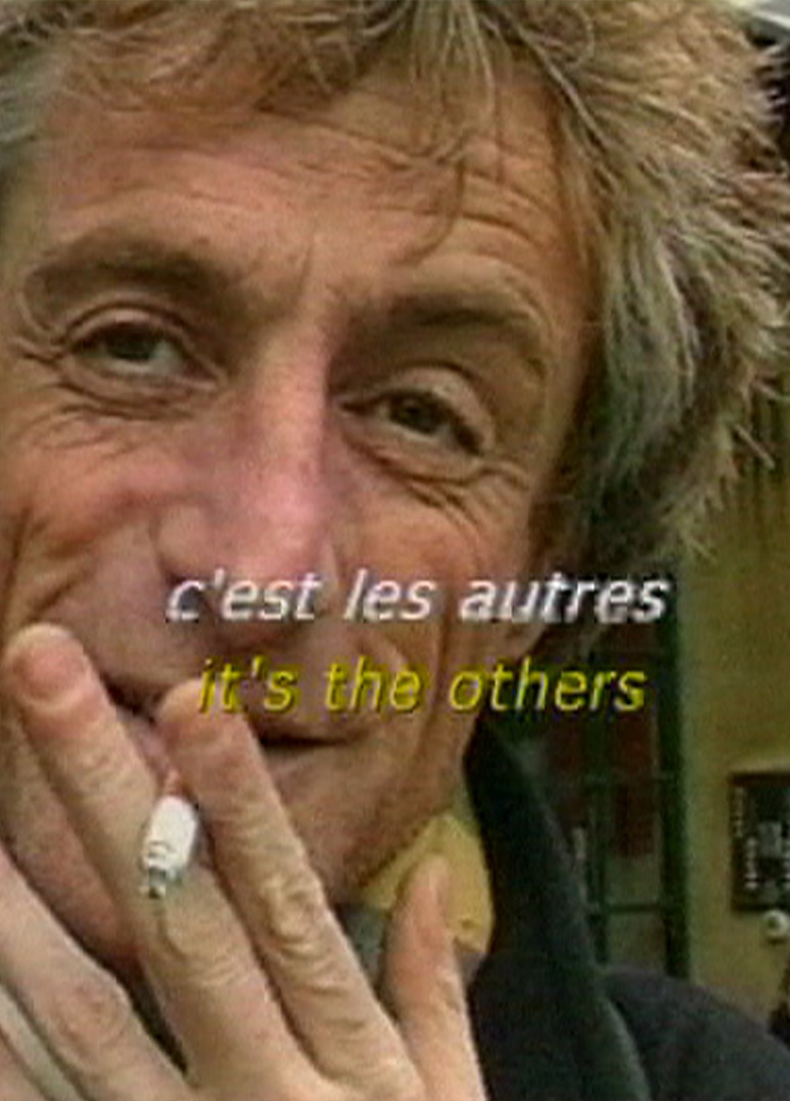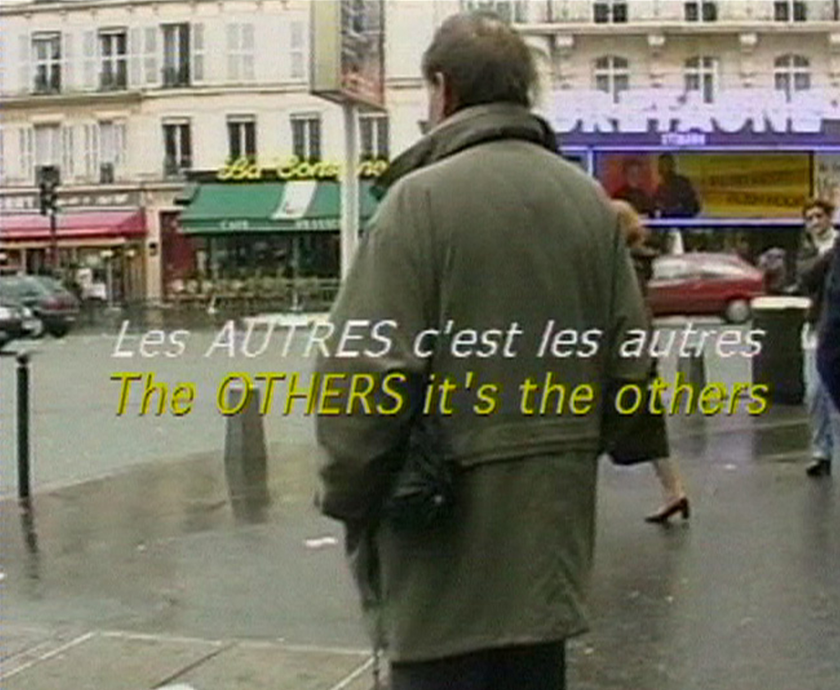 Les autres c’est les autres engage donc une réflexion qui traverse tout le travail de l’artiste à propos de la constitution de l’identité. Demander, se demander, qui sont les autres, c’est bien sûr aussi demander, se demander, qui je suis, moi, ou plus exactement comment je me constitue, comment je me définis à l’épreuve du regard de l’autre. Un passant s'empare de la caméra et la tourne vers l'artiste, qui lui pose la question: "Les autres, c'est lui." Car si l’autre est l’essentiel « médiateur entre moi et moi-même »*, qui me dit qui je suis et auquel je ne peux me soustraire, son regard et l’image de moi qu’il me renvoie sont nécessairement réducteurs.
