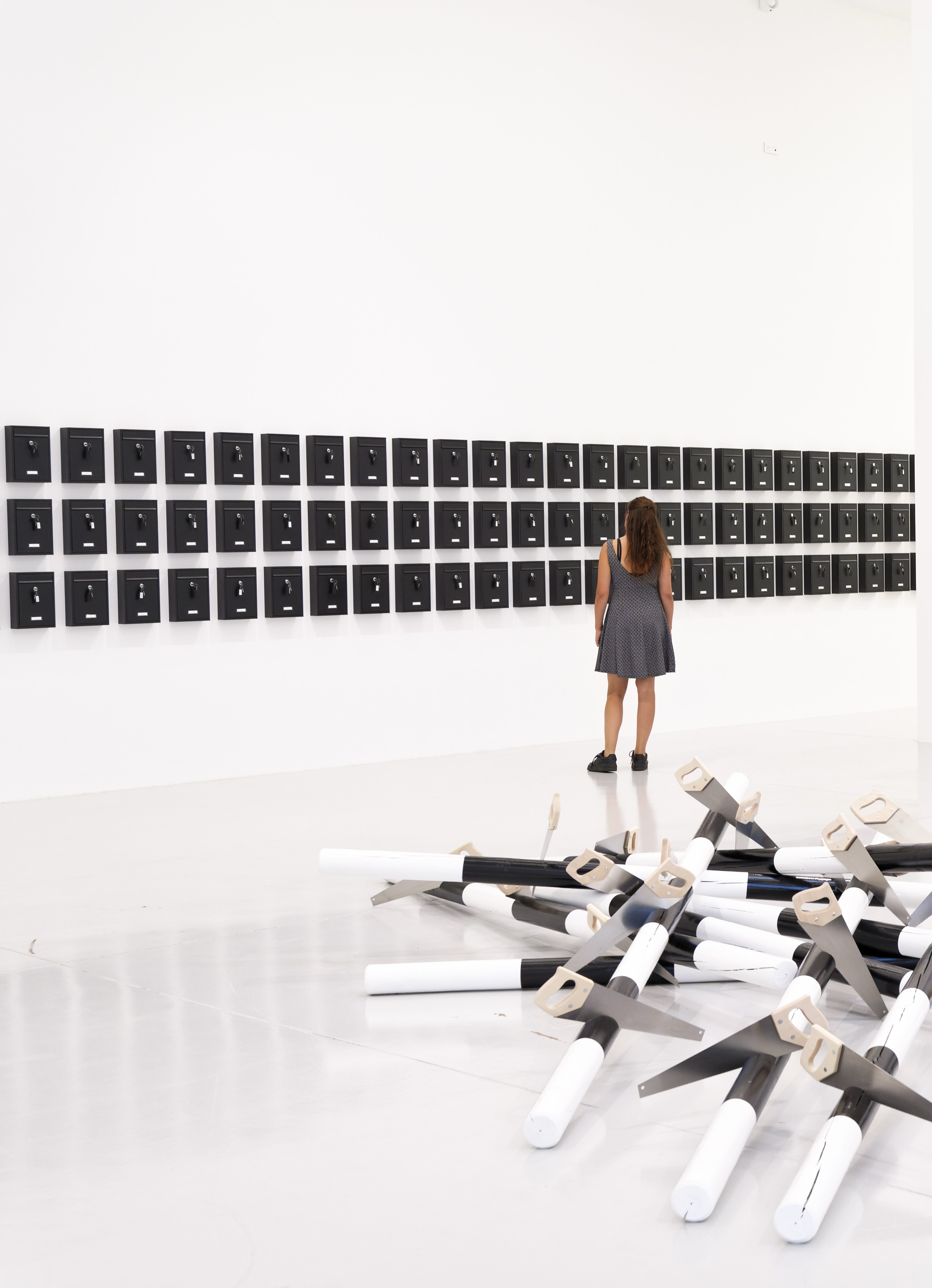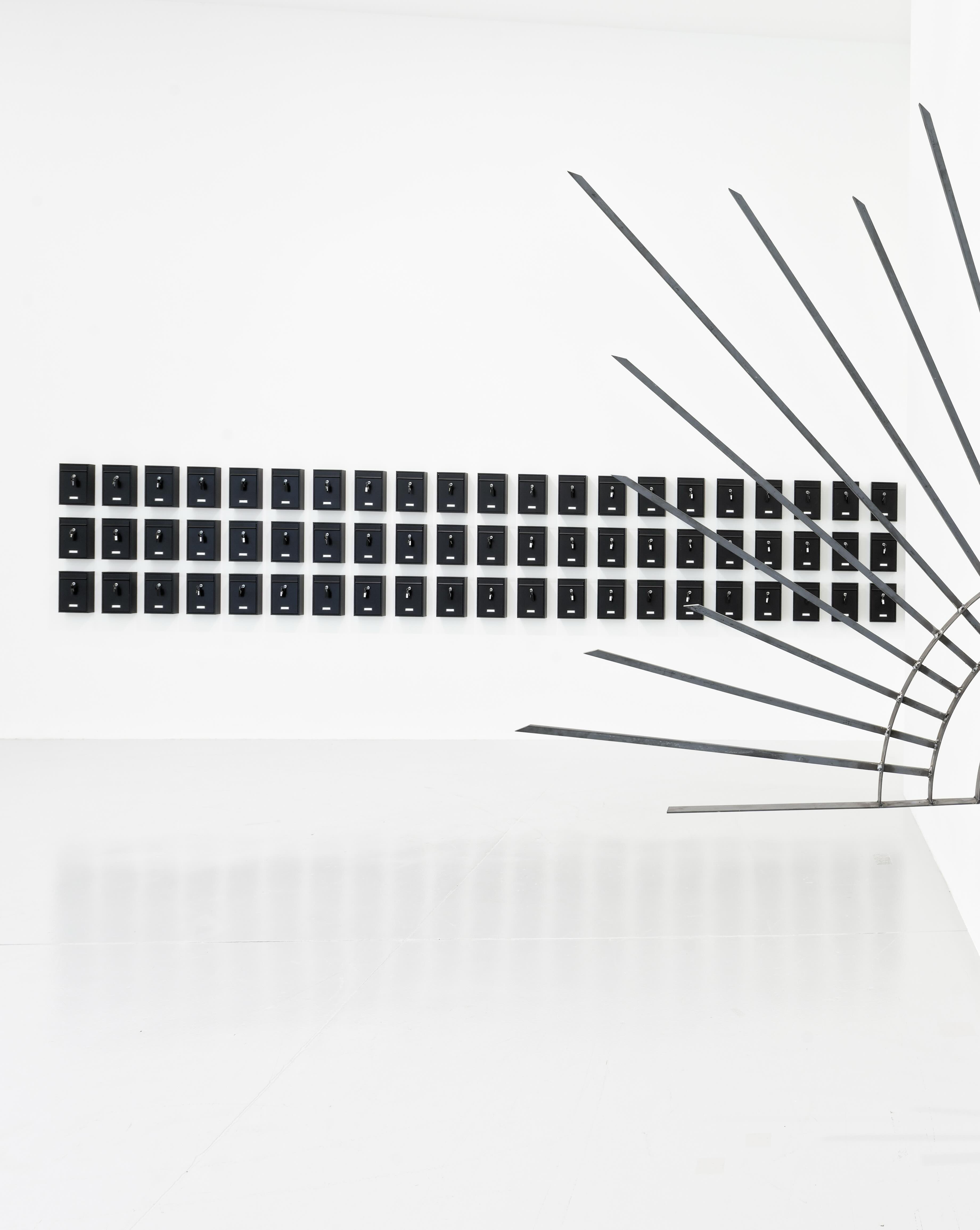 The setup created by the installation The Black Box could therefore represent a system for receiving divine messages. With this absurd effect: the viewer who is in the believer’s shoes is suddenly beset by doubt and dizziness when faced with the complexity of the notion of God. Quite ironically, the system for receiving messages and naming the recipient creates an impression of precision as much as a feeling of uncertainty, due to its multiple and maze-like configuration, which is cold and administrative, in a way Kafkaesque. A somewhat perverse divinity seems to have enjoyed complicating as much as simplifying the recipient’s task.