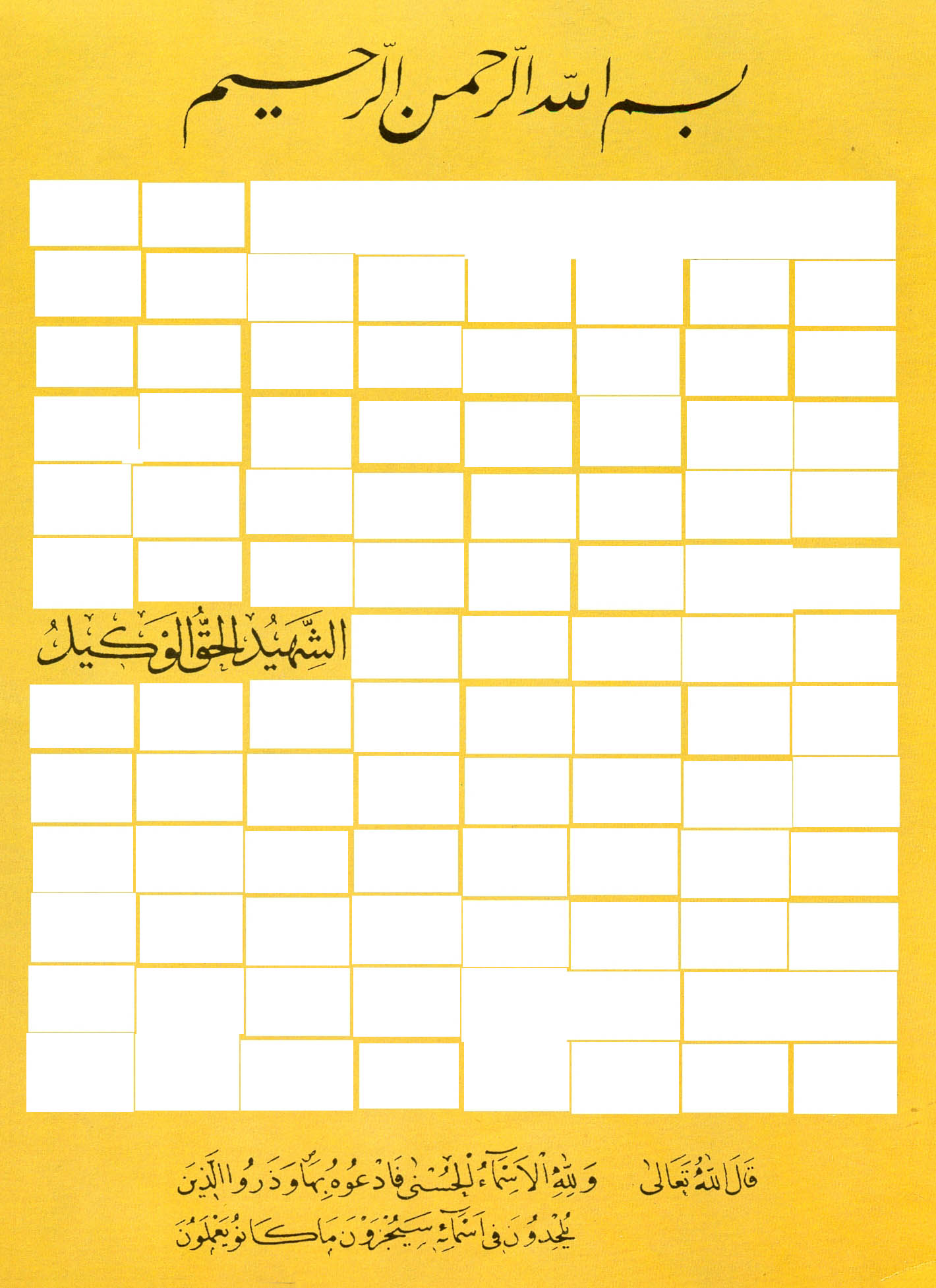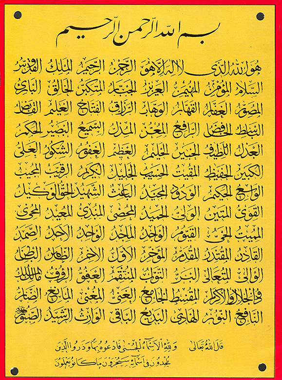 '' Faced with these 99 names, we each imagine a different God. Even if we cannot decipher the language, the written word retains its sacred value. ''