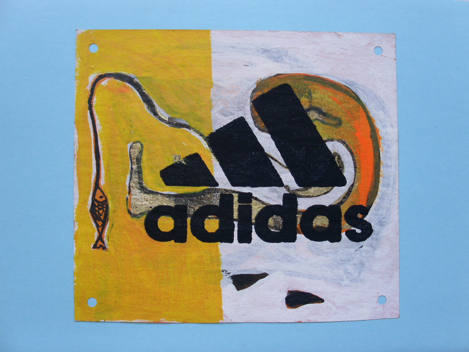 The series of Counterfeit Paintings comprises a set of silkscreen printings that superimpose a commercial logo onto paintings made by the artist. They question the status of the original and the copy in the age of digital and industrial reproduction.