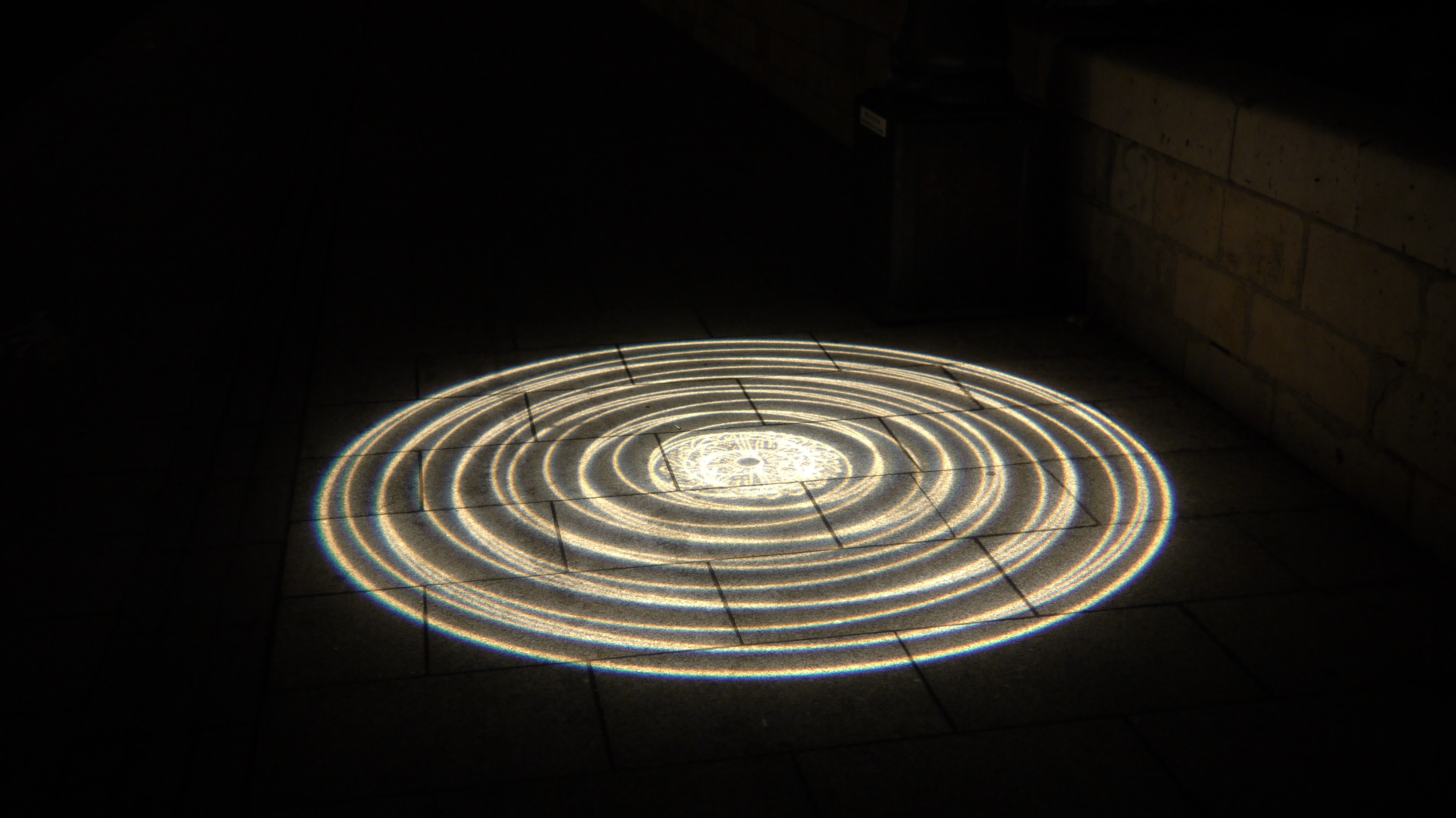 The work questions our relation to the world by connecting images and architecture, contemporary art and calligraphy. The installation multiplies references and sources of inspiration; it is reminiscent of Marcel Duchamp’s circular rotoreliefs – machines that produced optical illusions by combining the techniques of optical art with those of the modern industrialized world.