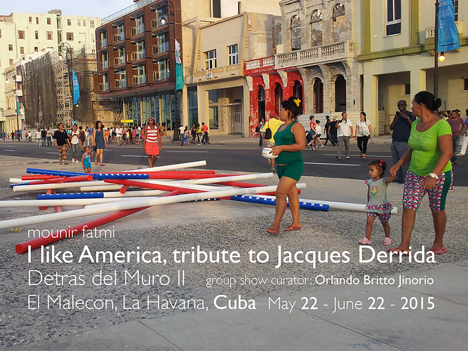 These obstacles recur like a leitmotif in the artist's work. Each time they represent a new challenge to be taken up. I like America invites the spectator to go beyond the idea of the flag, territory and identity – limits that are constantly imposed on the artist and anyone trying to overcome boundaries.