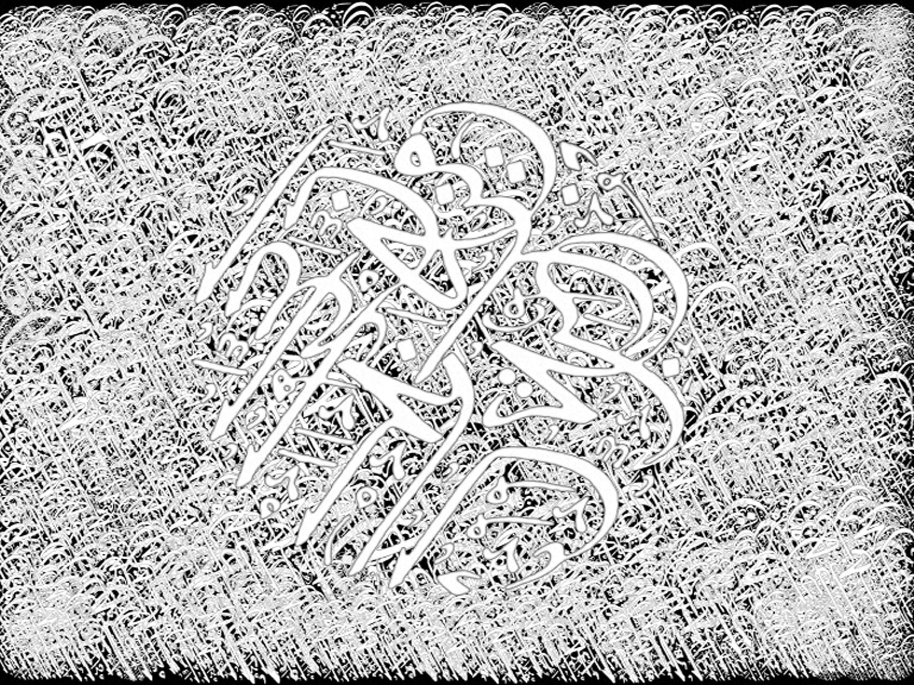 The video « The Message » shows calligraphed white circles rotating clockwise and anti-clockwise at various speeds. The large white circle in the foreground and the small intertwined and illegible circular motifs in the background rotate in opposite directions. As the speed of rotation increases, the noise emanating from a running machine becomes louder – a muted sound at first, a diffuse, slow and continuous vibration that progressively turns into the characteristic sound of a running motor. The translation of the calligraphed circles showing a quote from prophet Muhammad concludes the video. The motifs of the composition start blending with one another until they disappear in a diaphanous light, leaving an entirely white screen with an inscription in black characters: « God is beautiful and he loves beauty. »