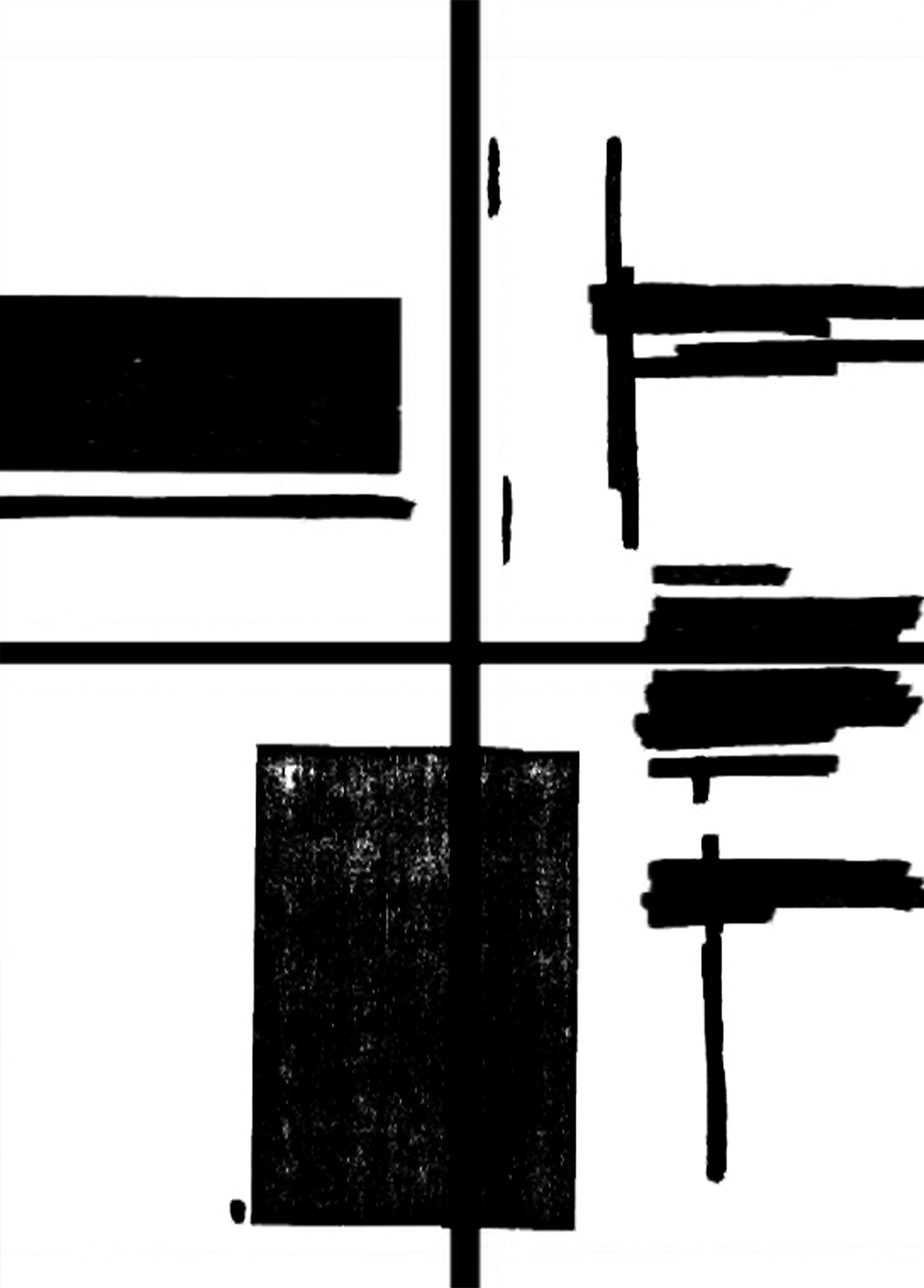 The final result of this work spanning over four years is a set of geometric shapes that are reminiscent of Malevitch’s suprematist drawings. The shift begins at the start of the creative process: the work is created with complicity of the censors of information at the FBI, as they are its unwilling initiators.