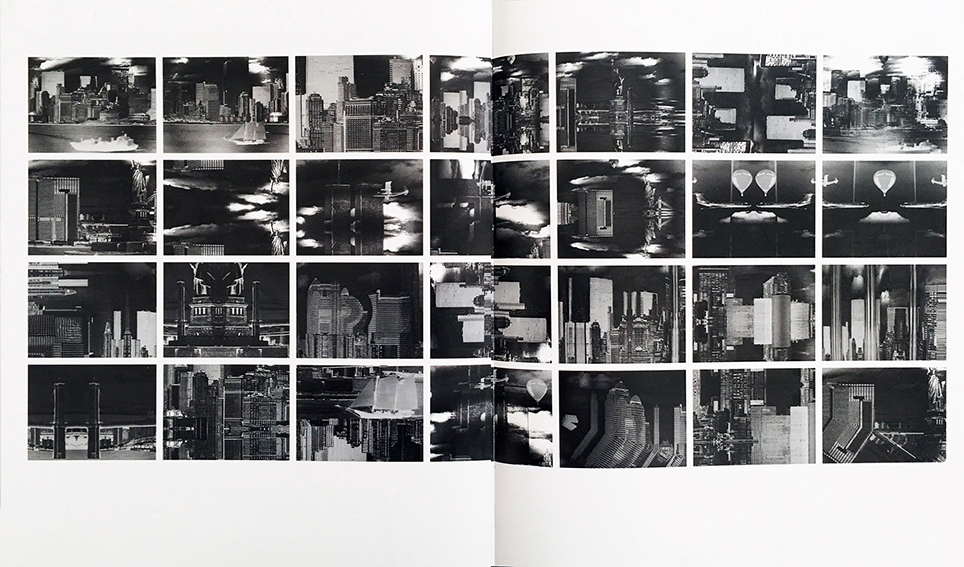 Save Manhattan is a series of black and white prints showing images of New York City and its architecture: its numerous building and skyscrapers, including the twin towers of the World Trade Center, the Statue of Liberty, its bridges (the Brooklyn Bridge and Manhattan Bridge), as well as marine and aerial means of transportation that enable access to the island of Manhattan.
