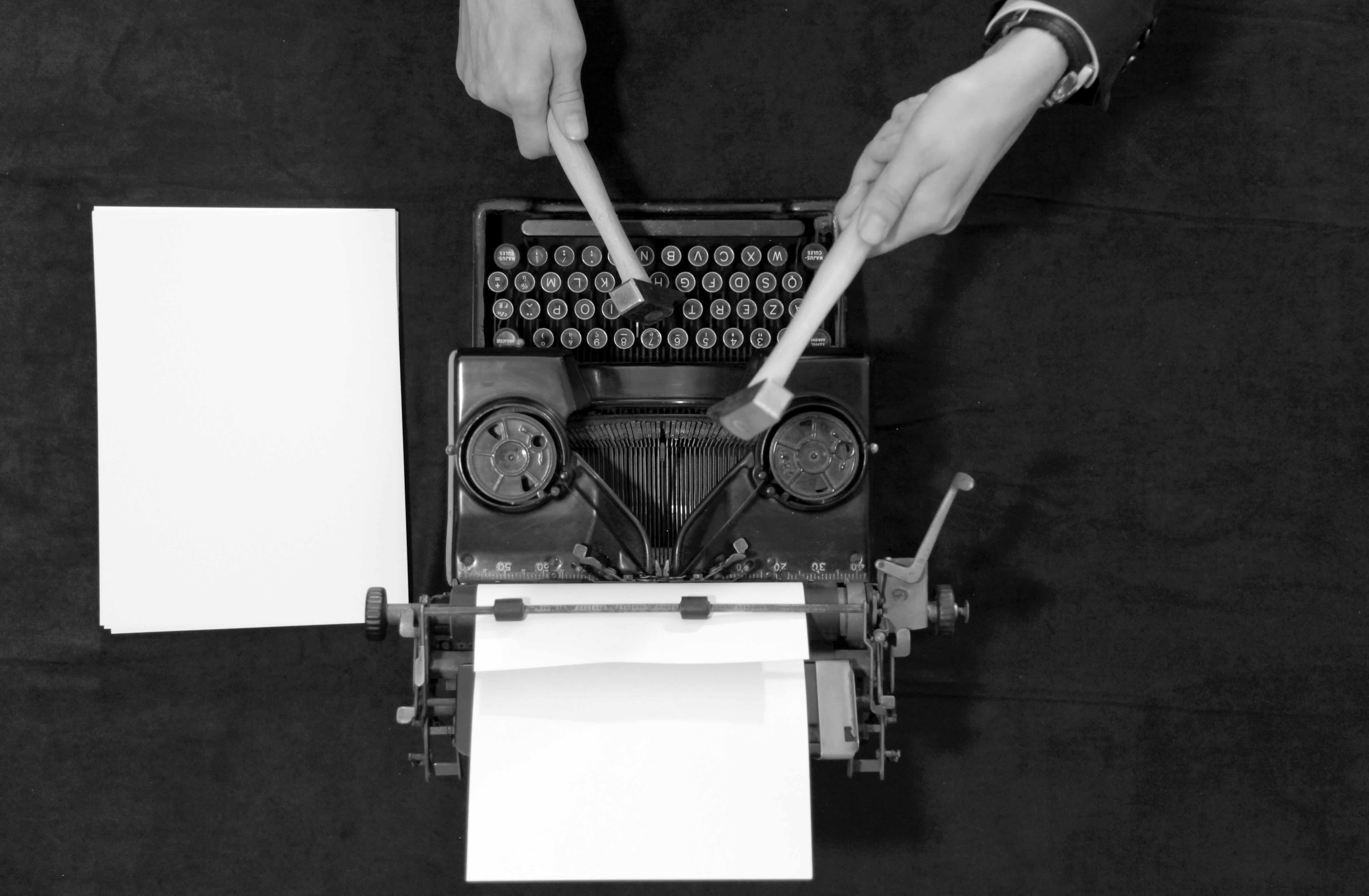 Cette série de photographie, tel le story board de la vidéo éponyme, décompose l’action en reprenant les différents plans. Cette succession de prise de vue, donne un aspect dramatique à l’action de frapper sur un clavier avec des marteaux.
