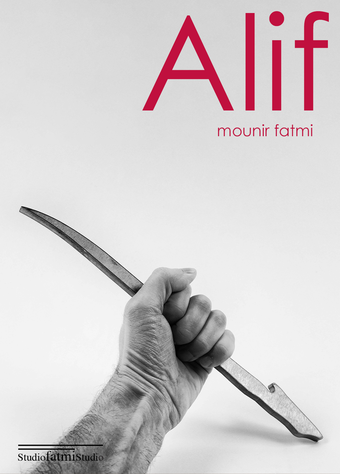 Alif est une œuvre photographique en noir et blanc montrant l’avant-bras d’un homme serrant dans sa main une forme légère courbe et allongée, tel un poignard. Cette série de clichés commencée en 2015 est un work in progress qui doit se développer sur un ensemble de photographies, de vidéos et d’installations.