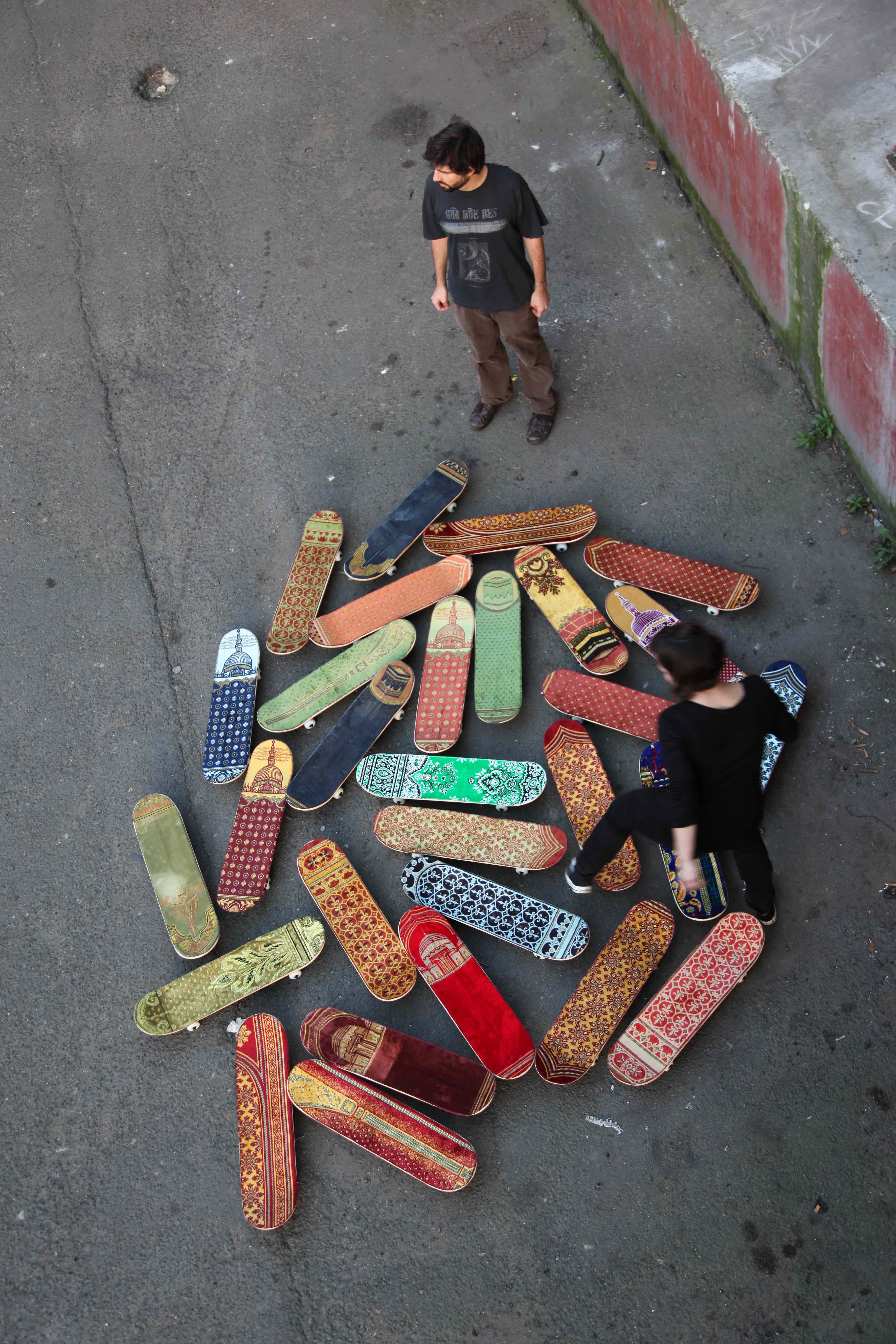 2019, 14 skateboards, prayer rugs.