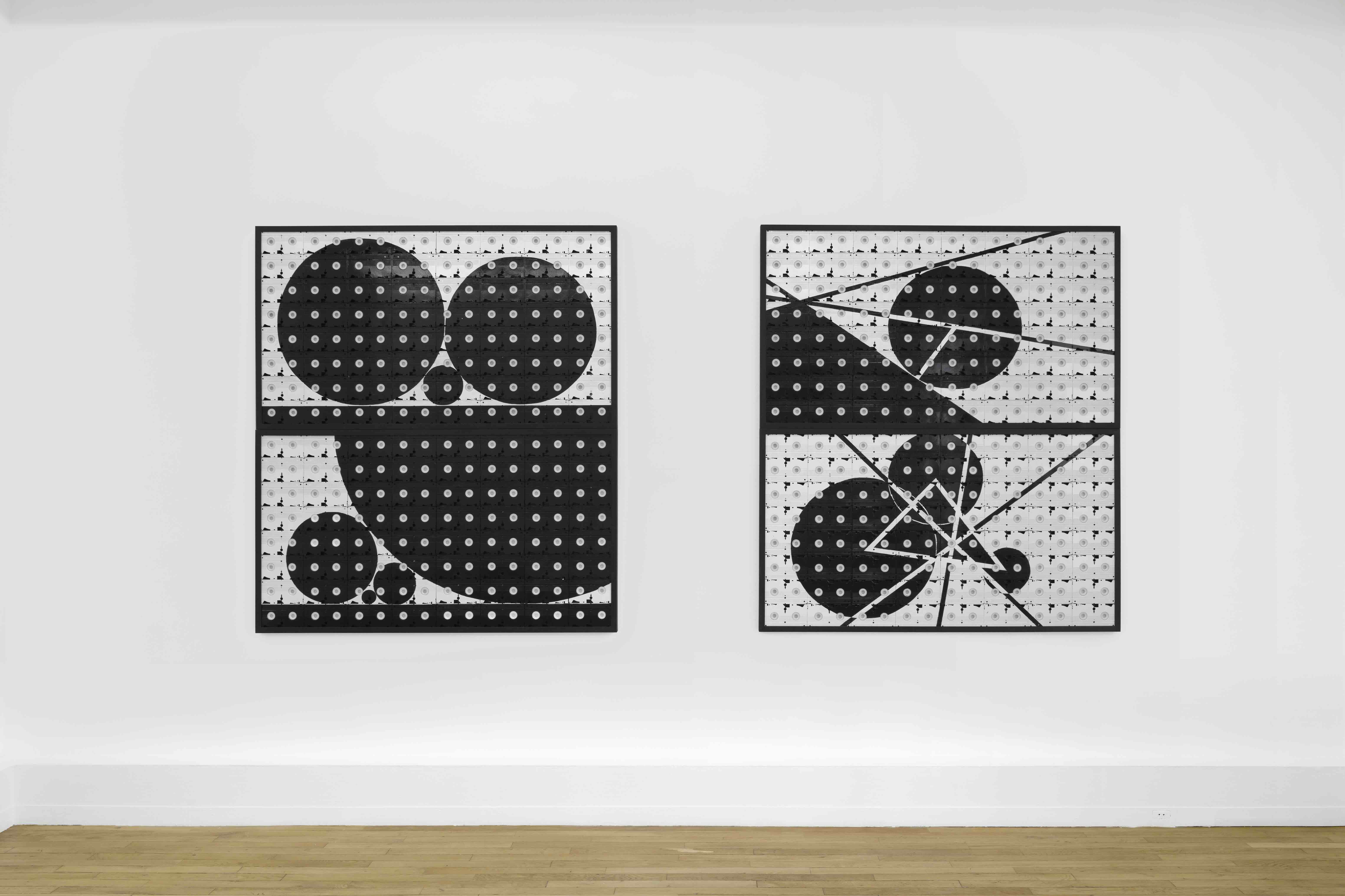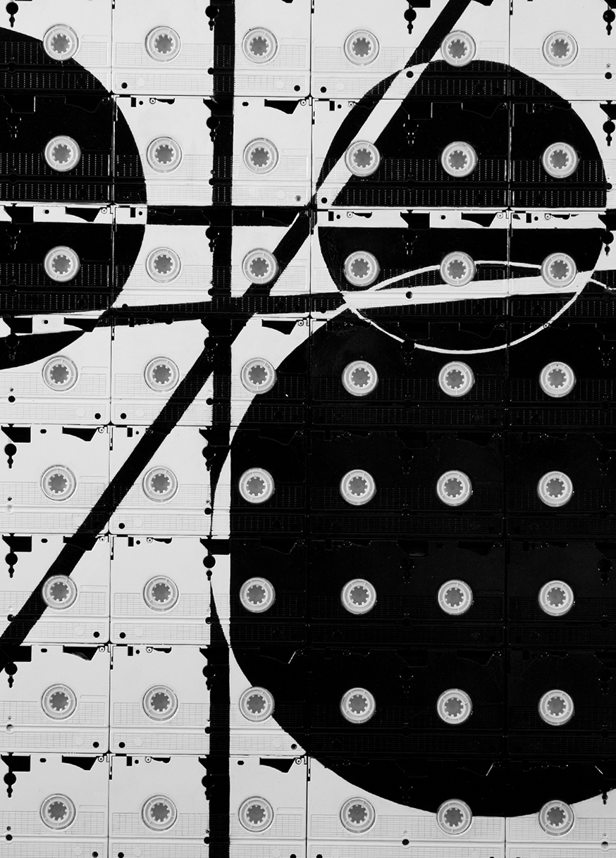 « Propaganda » is a series of black & white paintings initiated in 2012, the medium on which they are painted being rows of VHS tapes. A means for recording images that was the norm in the 1980s and 1990s and a widely used commercial format, the VHS tape is also a recurrent material in mounir fatmi’s work, used in paintings, sculptures or installations.