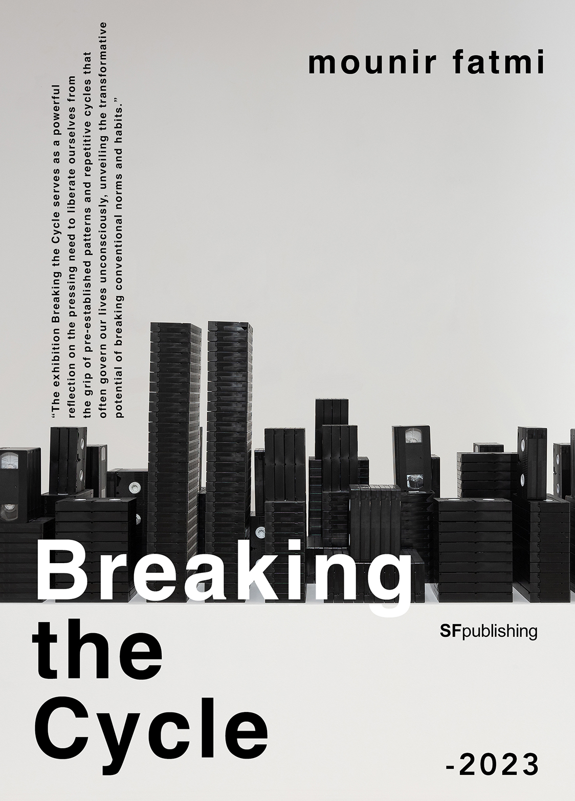 A travers des photographies, des vidéos, des sculptures et des installations, mounir fatmi questionne le rapport du spectateur à un événement marquant de l'histoire récente et s'interroge sur les bouleversements psychologiques, sociaux et politiques que celui-ci a entraînés. Ces œuvres envisagent le phénomène étudié d'un point de vue architectural. Elles retracent la skyline de la ville de New York, référence culturelle familière, présente dans les imaginaires collectifs, et explorent à la fois les structures profondes des organisations sociales et celles de nos pensées, de nos perceptions individuelles et de notre rapport au monde. L’installation « Save Manhattan 03» a recours à la technique des ombres portées qui reproduisent la skyline new yorkaise telle qu'elle était avant les attentats, c'est-à-dire avec la présence des tours jumelles du World Trade Center. Les ombres évoquent le souvenir d'un lieu et d'un événement et introduisent à une exploration des relations entre mémoire, imaginaire et réalité.