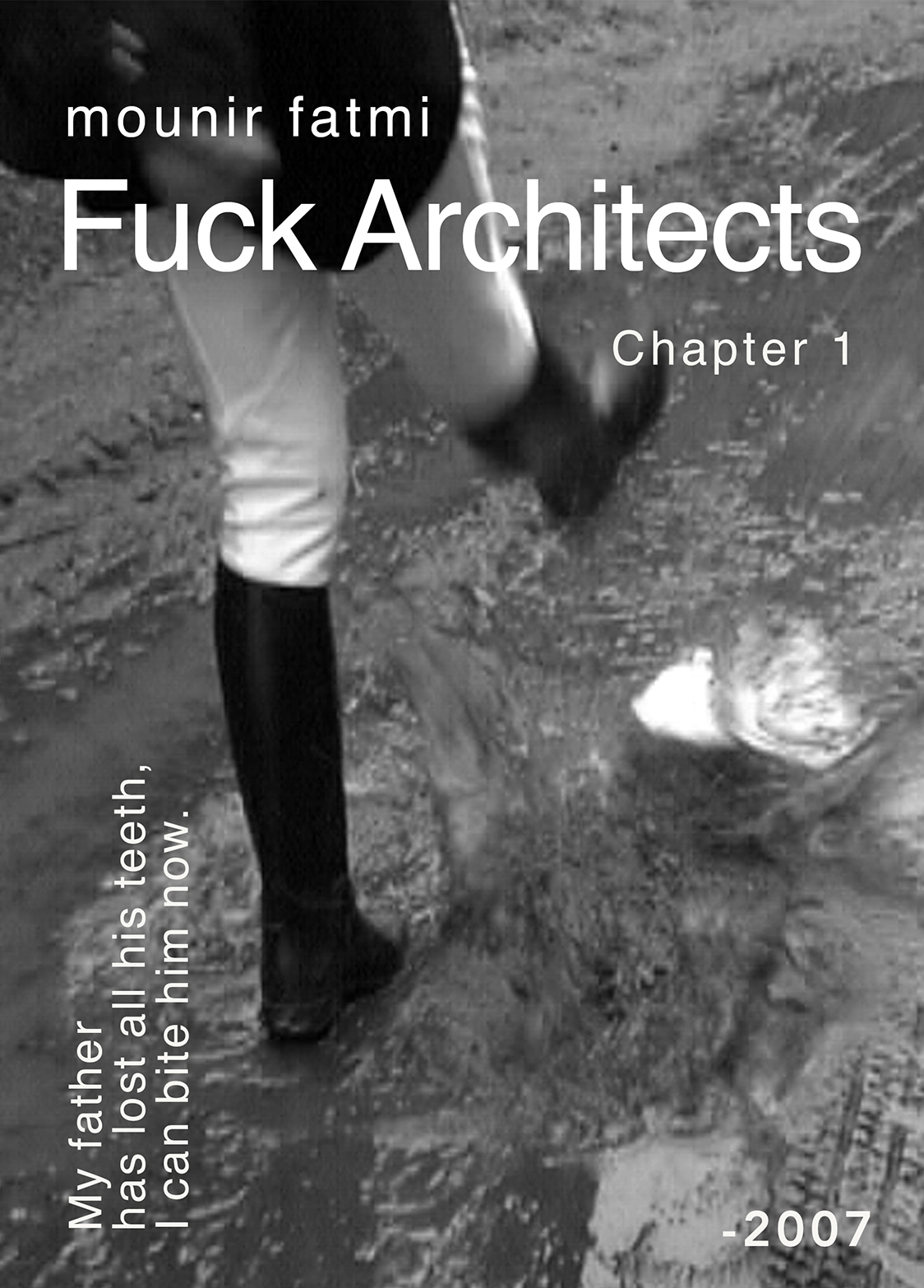 Is it the "end of history"? The angry gesture of a book being destroyed and dragged through the mud appears to confirm the rejection of a History as "a justification for all sacrifices," and the "principle of arbitrariness and terror," a form of resistance to this History that "suggests another kingdom, an unfounded dogma imposed by those who benefit from it". “Man,†mounir fatmi tells us at the end of the video, "is the sole hero of his own history." No determinism can oppose such an existential postulate. But will the individual resist History? Despite the confidence of his steps and his determination to destroy, in the end, the man nonetheless collapses in the mud.